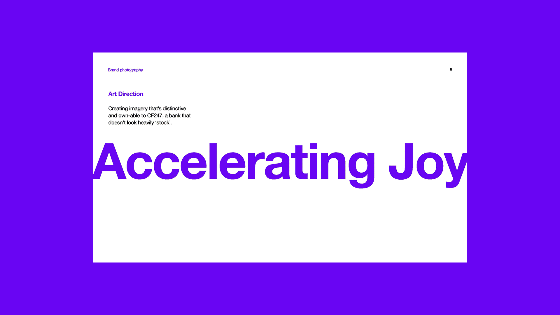Accelerating Joy was the back bone of our thinking, we wanted to link to the feeling of being able to get finance on a new car and how that felt.