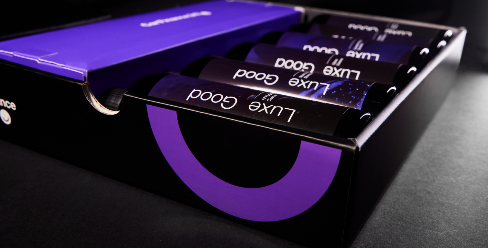 The second route landed immediately. Named Luxe Good, it does two things at once: a dual play on words that captures both the premium quality and the feel-good nature of the brand, with a hidden smiley face tucked into the lock-up for good measure.